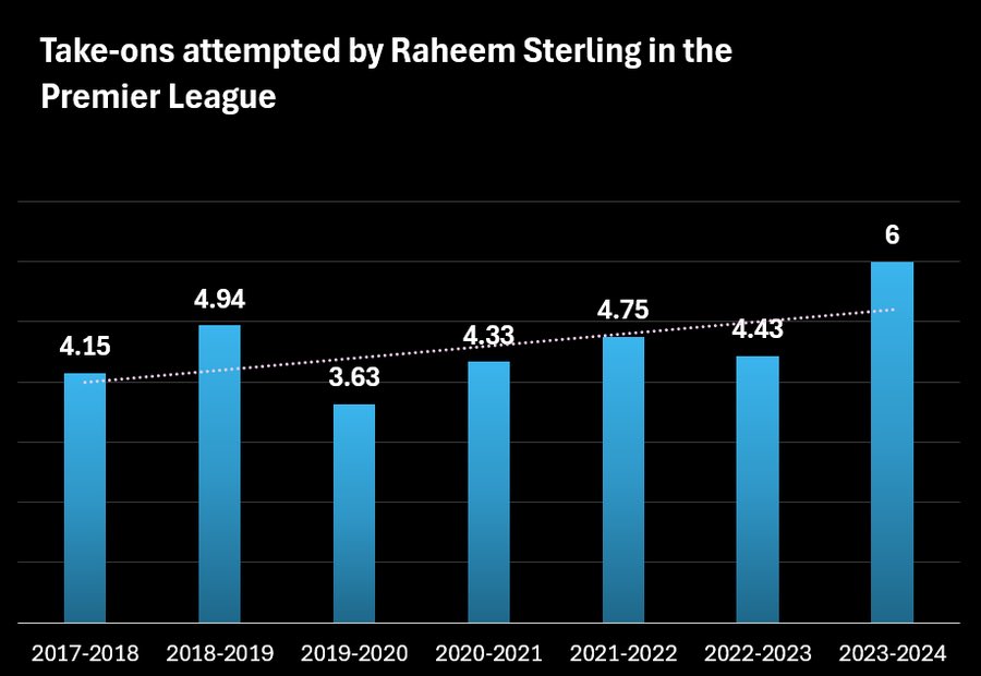 Sterling’s transition period from a balanced environment at City under Guardiola to different managers in his 2 year spell at Chelsea has only gone on to effect his game. Might’ve not had the most impressive spells but it surely is promising.