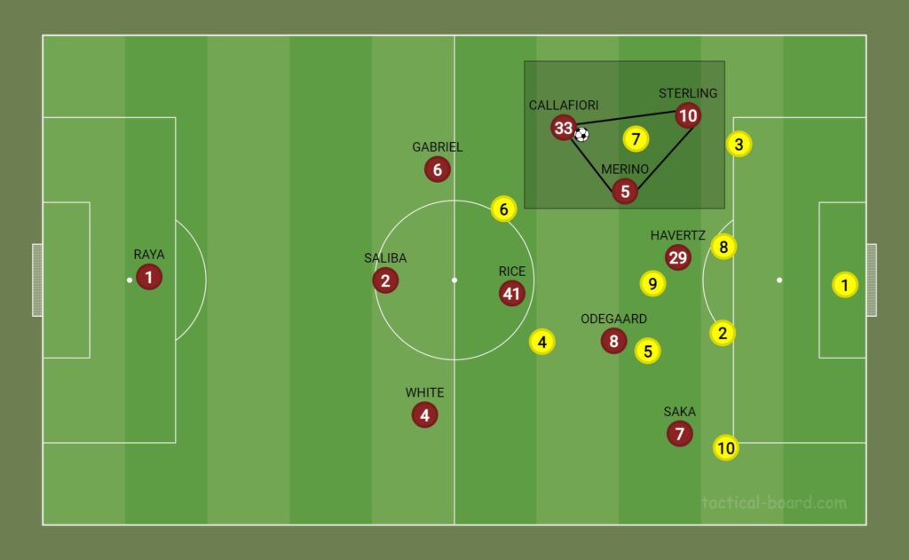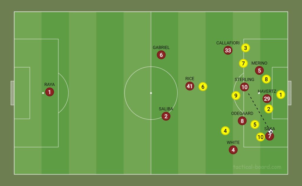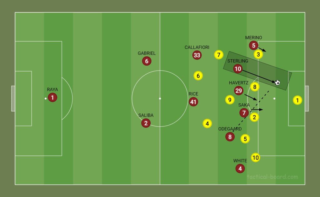 Sterling playing through the left could give the Gunners a strong variable. The LHS of Calafiori x Merino x Sterling would provide the tactical flexibility of overlaps/underlaps and also create spaces to interchange and maximise the LHS drastically