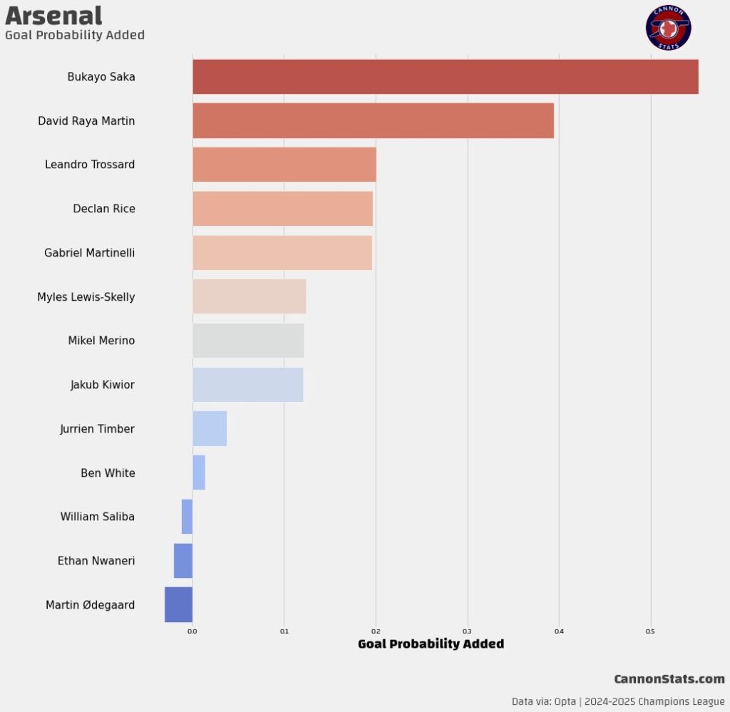 Despite the high tempo of the match, Ødegaard managed only one pass into the final third and completed just one of five dribble attempts. He also registered the lowest expected goal contribution among Arsenal’s starters—uncharacteristic numbers for the team’s primary playmaker.